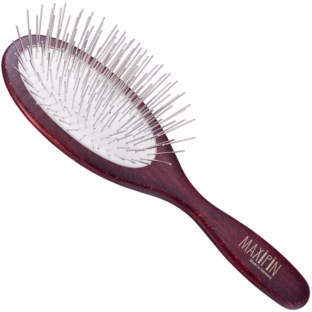 Maxi Pin – tai aukštos kokybės, rankų darbo šepečiai, pagaminti Vokietijoje. Labai patogus ir efektyvūs, modelis puikiai tinka ilgiems ir storiems plaukams išnarplioti. Rankena pagaminta iš natūralaus ir šviesaus buko medienos